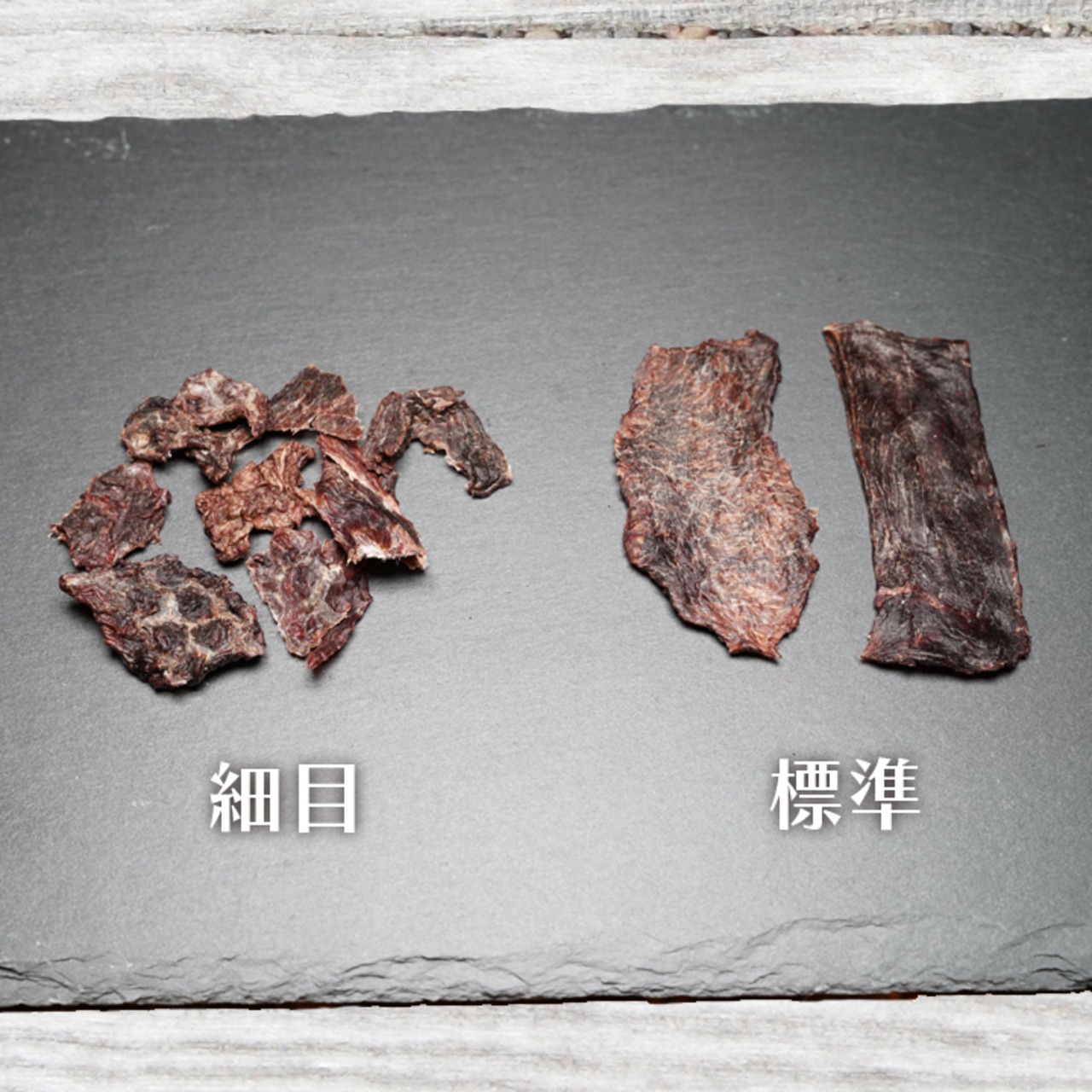 標準サイズよりも肉を細かくして製造しています。小型犬用またはフードにふりかけてお使いください。