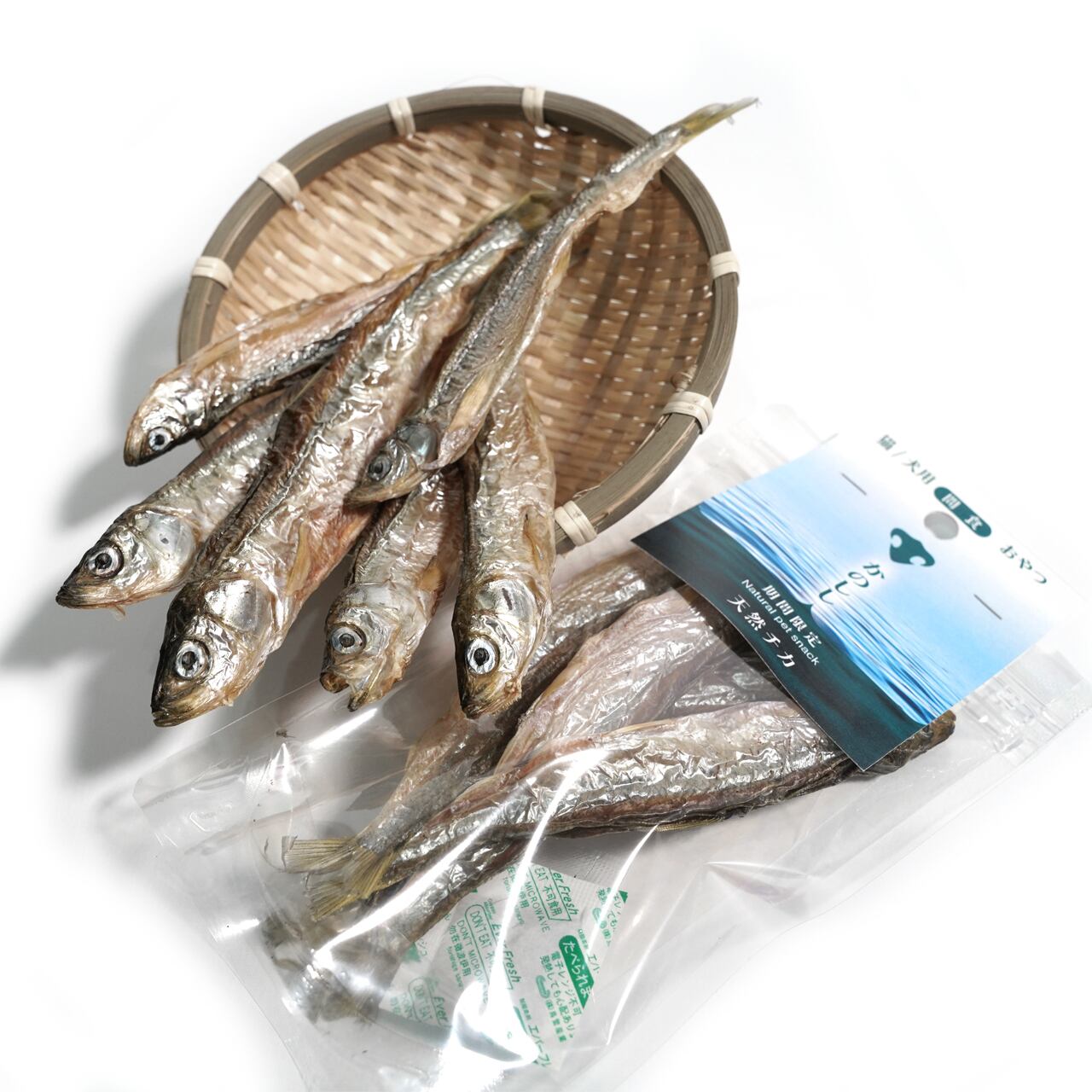 北海道と東北地方に生息するチカは「海のわかさぎ」です。わかさぎの味をそのままに大きくした魚です。北海道でとれたチカをサクサクに乾燥させた干し物です。高温乾燥器を使い水分量を10%以下に抑えた間食おやつです。